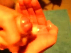 Big-cock crossdresser cums on leg in pantyhose solo video